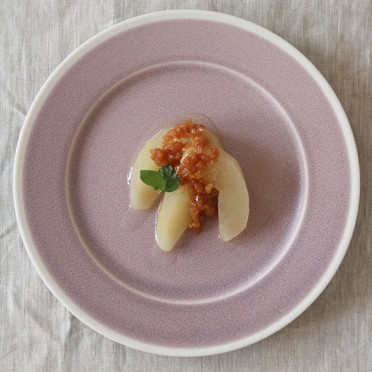 江戸時代に舶来のガラス製品を意味した「ぎやまん」。その名を冠したこの器は、ガラスのような艶と深い色合いを、美濃焼の技術で表現した一品です。漆黒や瑠璃の輝きが料理を際立たせ、和洋どちらのテーブルにも品格を添えます。華やかな食卓を演出したい日や、おもてなしのひと皿に。my noonでは、気品と存在感を兼ね備えたぎやまんシリーズを取り揃えています。