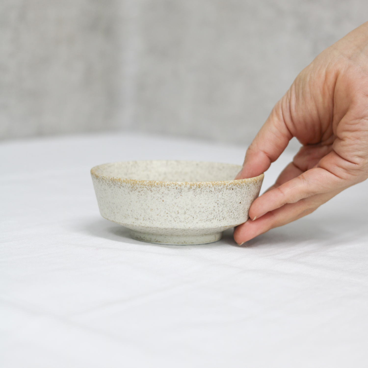 横から見るシルエットがとても上品で、食卓に一つあるだけで華を添えてくれる小鉢です。副菜やスイーツなど万能にお使いいただけます。サンドベージュの色合いは色鮮やかな食材との相性もよく、和食洋食問わず出番の多いうつわです。業務用としても人気のシリーズです。