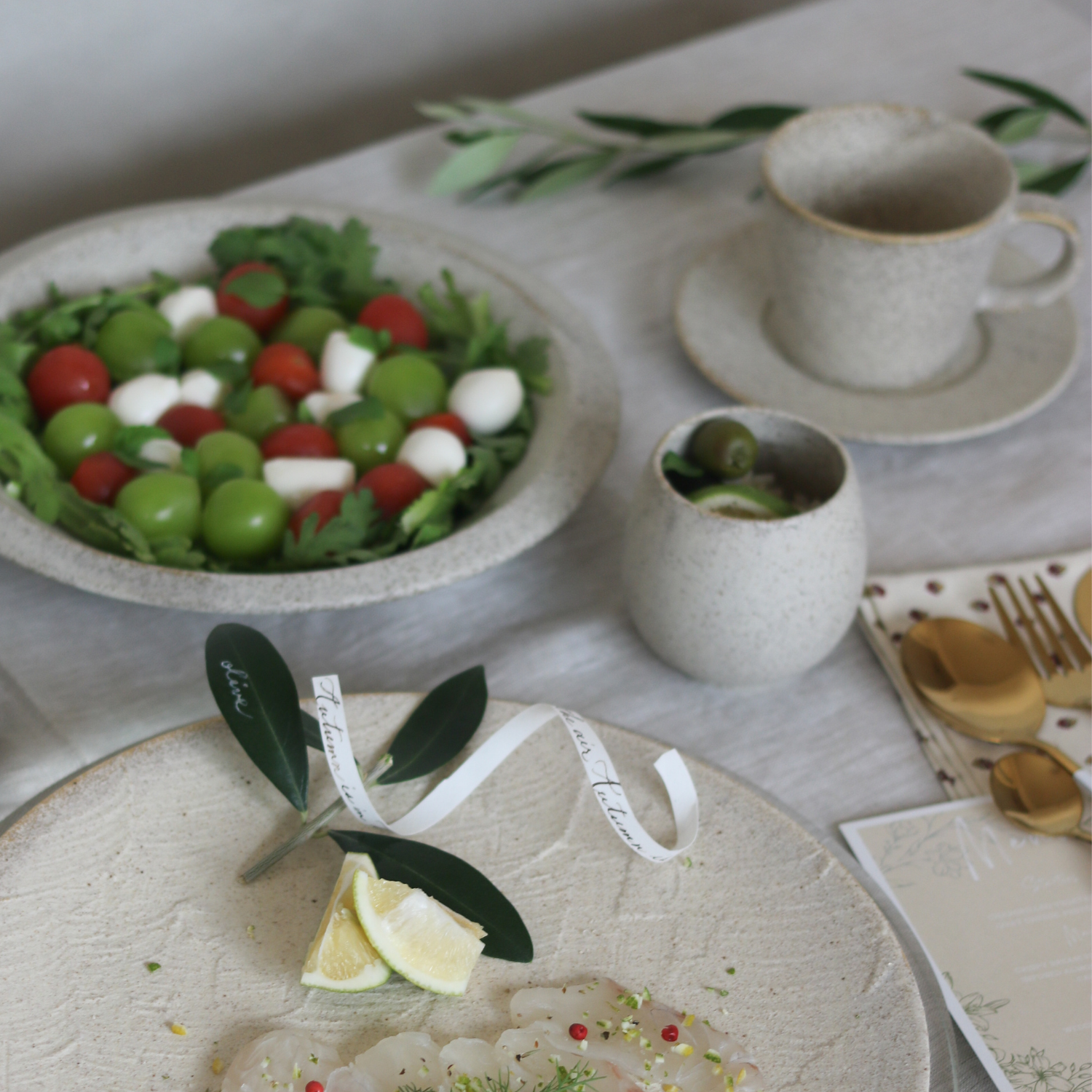 絹衣と名付けられたこのシリーズは、絹のようなナチュラルな色合いとマットな素材が見事にマッチングした逸品。引き算の料理と言われる「和食」の繊細さを引き出す素材でありながら、洋を意識したフォルムやナチュラルさが本当に秀逸です。