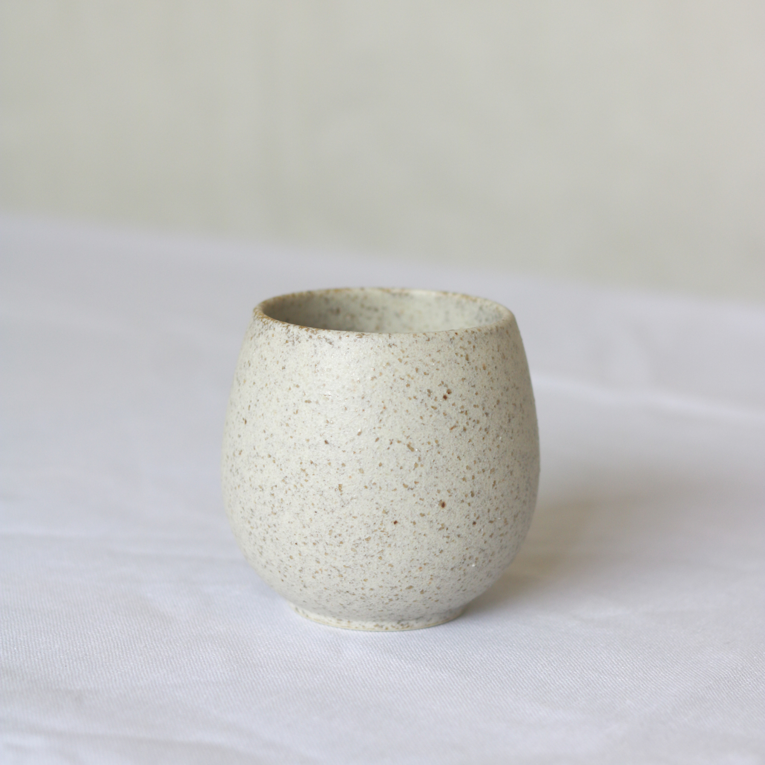 コロンと手に収まる形がかわいく、湯呑ではありますが、お料理を盛りつけても。またプリンやあんみつなどのスイーツにもおすすめ。サンドベージュで素朴な色合いは飲み物をおいしく見せてくれ、テーブルコーディネートの主役にもなれる上品なカップです。