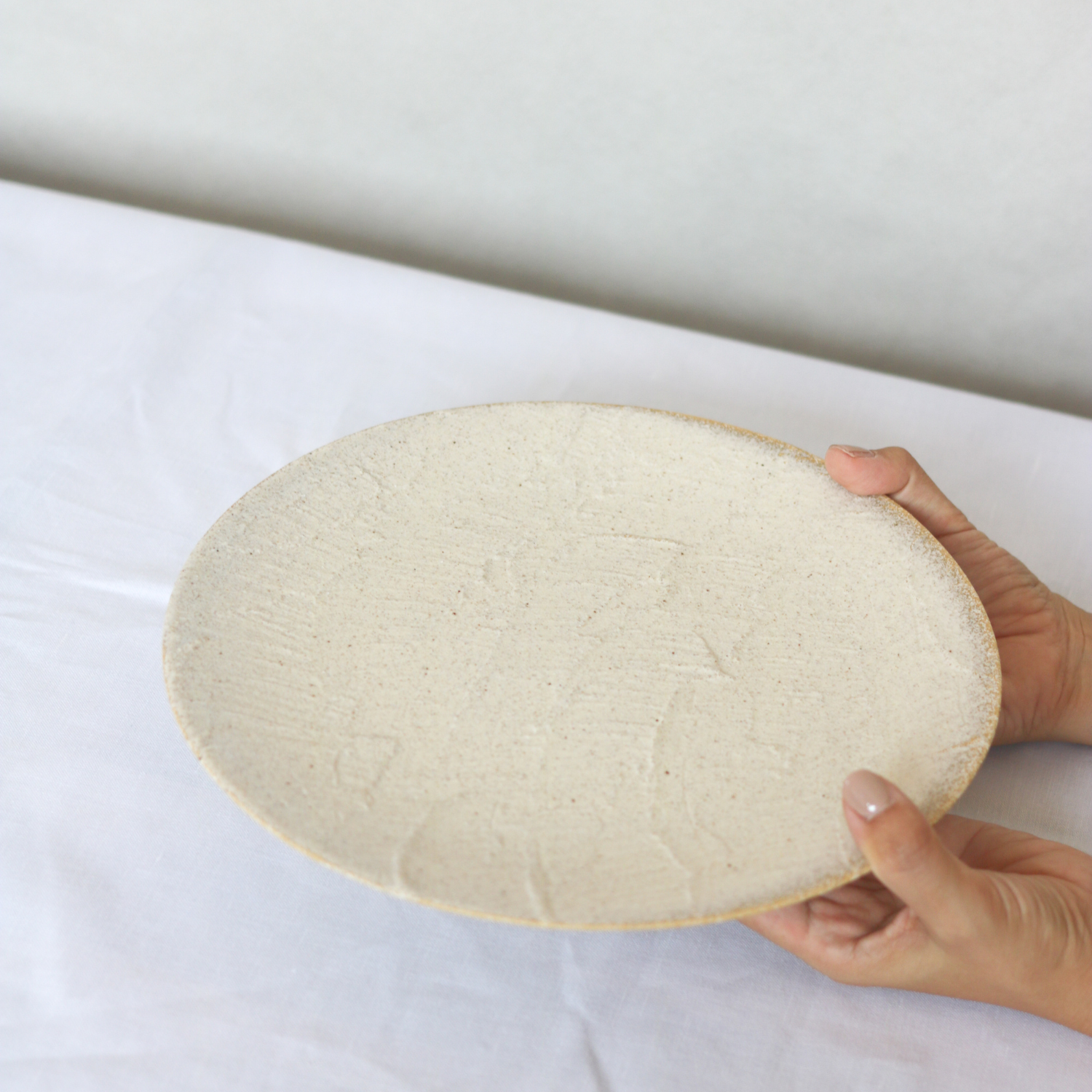 まるで塗り重ねた漆喰の壁のような表情が印象的な「漆喰」シリーズ。光の角度によって陰影がうまれ、手仕事のあたたかさを感じさせてくれます。
