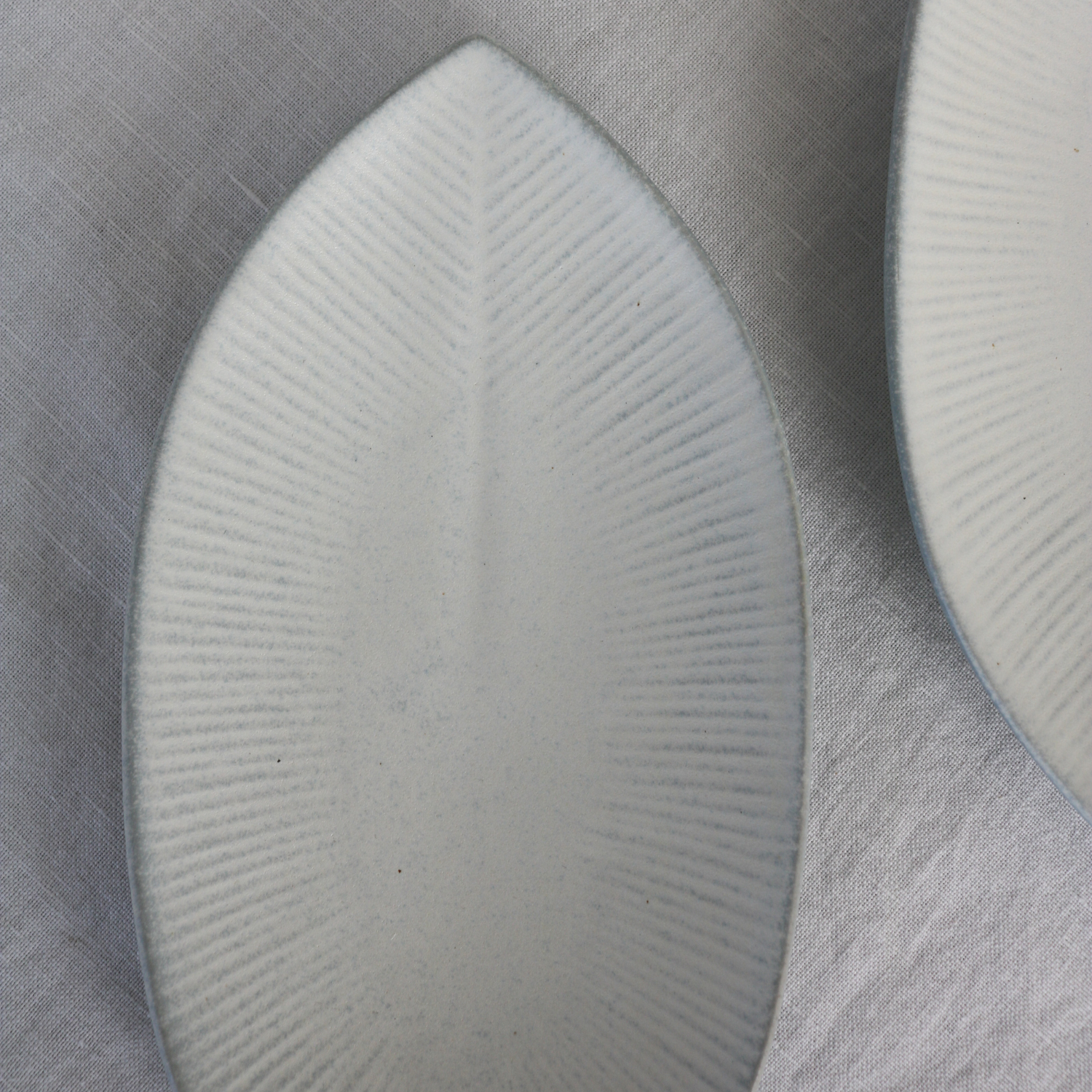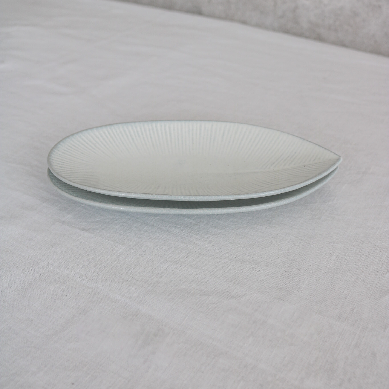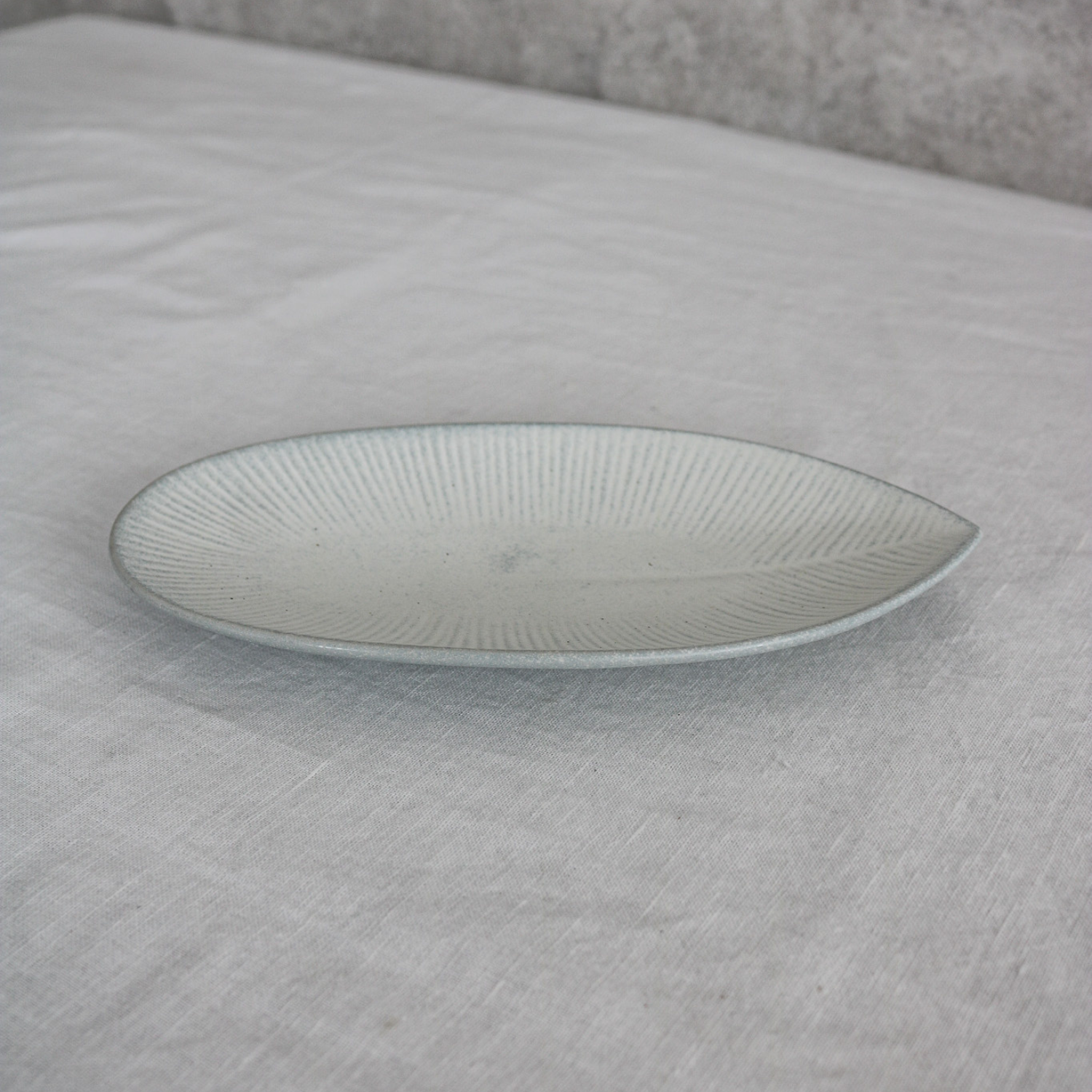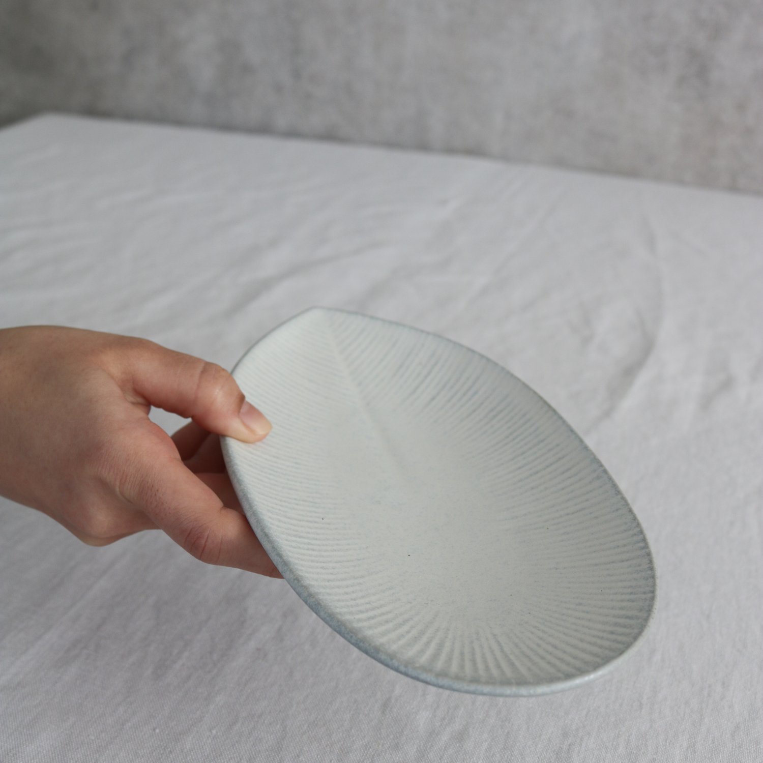このドルチェシリーズは青みがかった白が美しくマットな質感でクールな一面と、ほっこりあったかい北欧風の雰囲気も持ち合わせた不思議な印象のうつわです。爽やかなデザインはモーニングプレートとしてもぴったり。木のカトラリーなどとも相性が良いですが、しのぎ模様の濃淡がほんのり浮かび上がる美濃焼の和食器です。