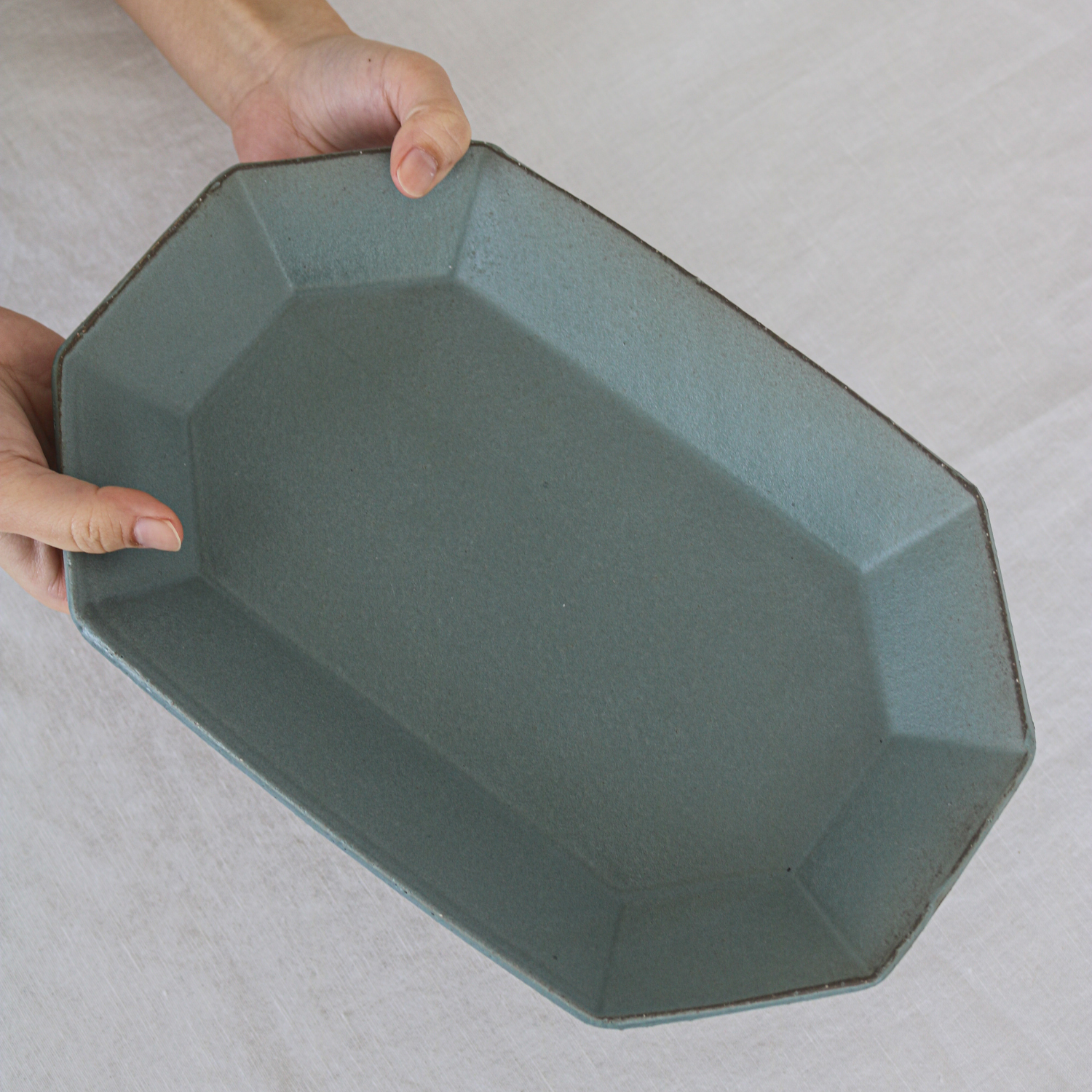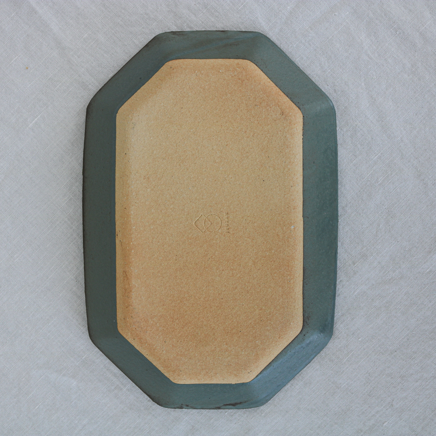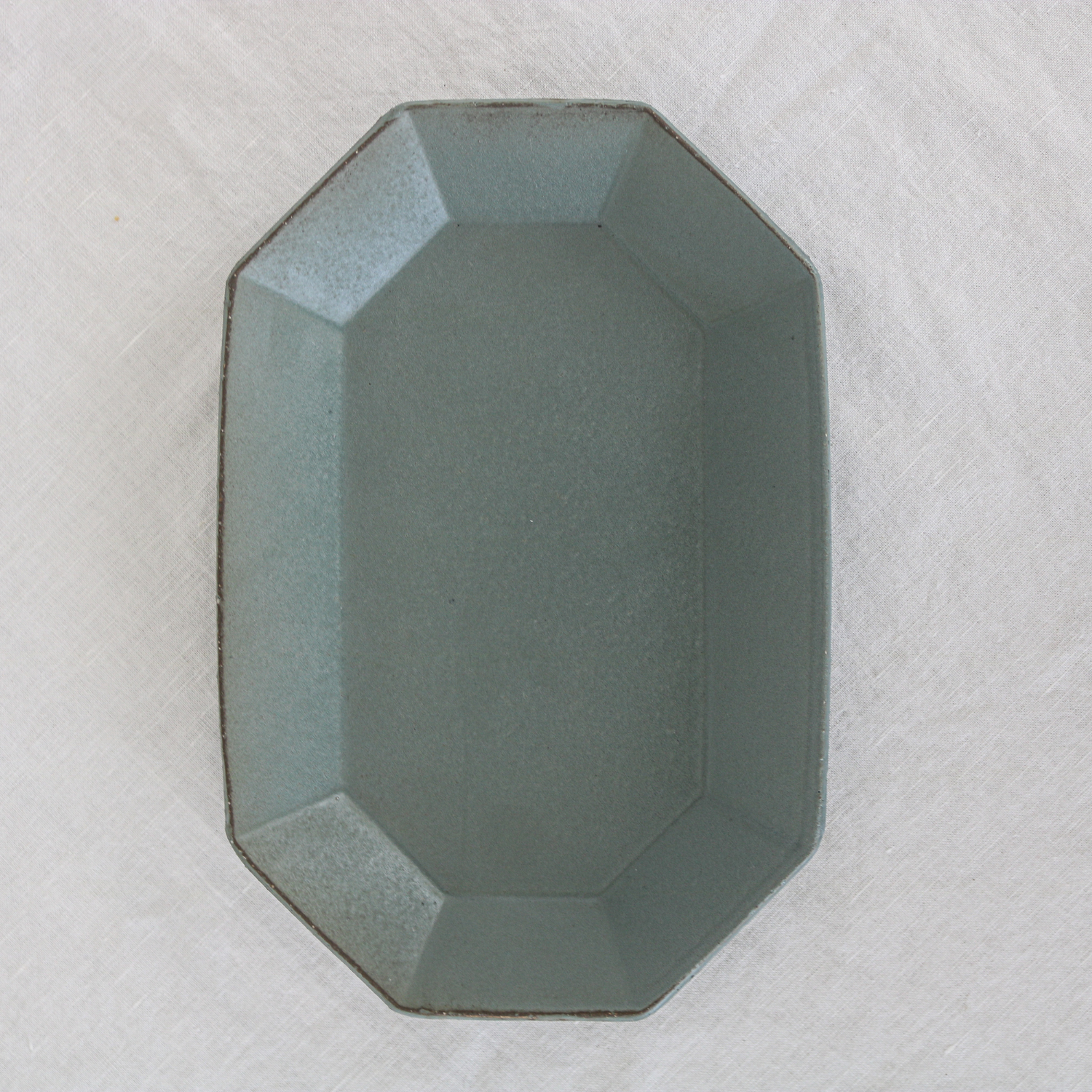 平面だけでかたちづくられた八角形のお皿。丸い器にはない独特の美しさがあります。空間を彩るタイルのノウハウが生かされています。
