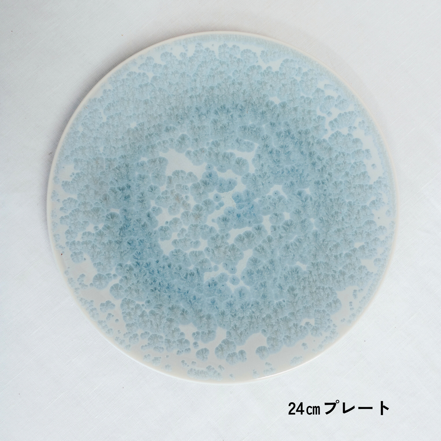 吸い込まれるような水晶な輝きを放つ藍晶。生産者が試行錯誤を重ね続けた色の集大成とまで言われているうつわです。特別なお料理には特別なお皿を。