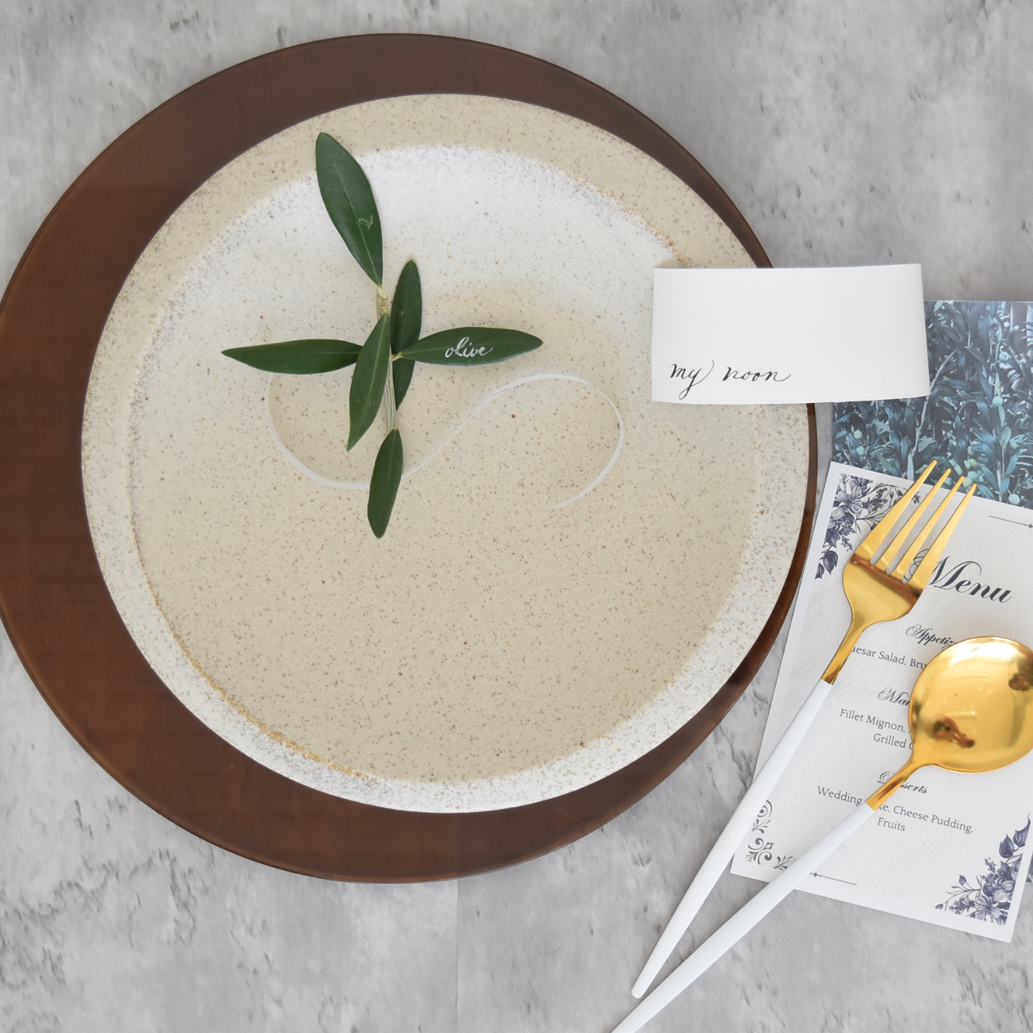 絹衣と名付けられたこのシリーズは、絹のようなナチュラルな色合いとマットな素材が見事にマッチングした逸品。その中でもリムのゆがんだ変化がアクセントになっているこのシリーズは、横から見るとその形がよくわかります。