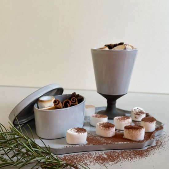 カラーは高級感たっぷりのブロンズカラーと、ナチュラルクラシカルなグレーがかった白。どちらも陶器としては珍しい色味で食卓にアクセントを加えてくれる一品です。