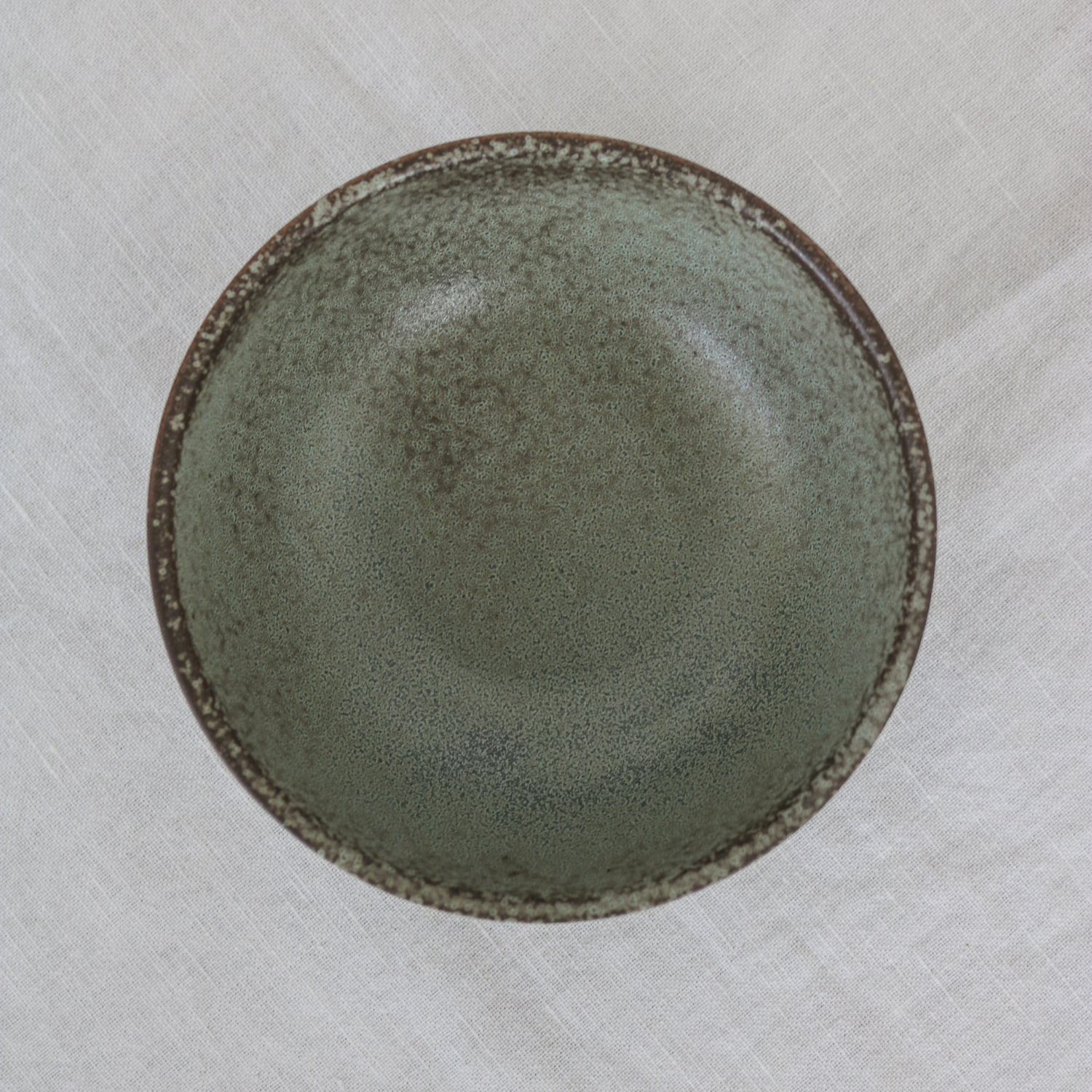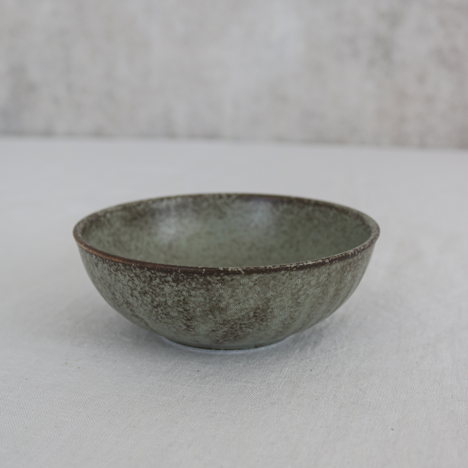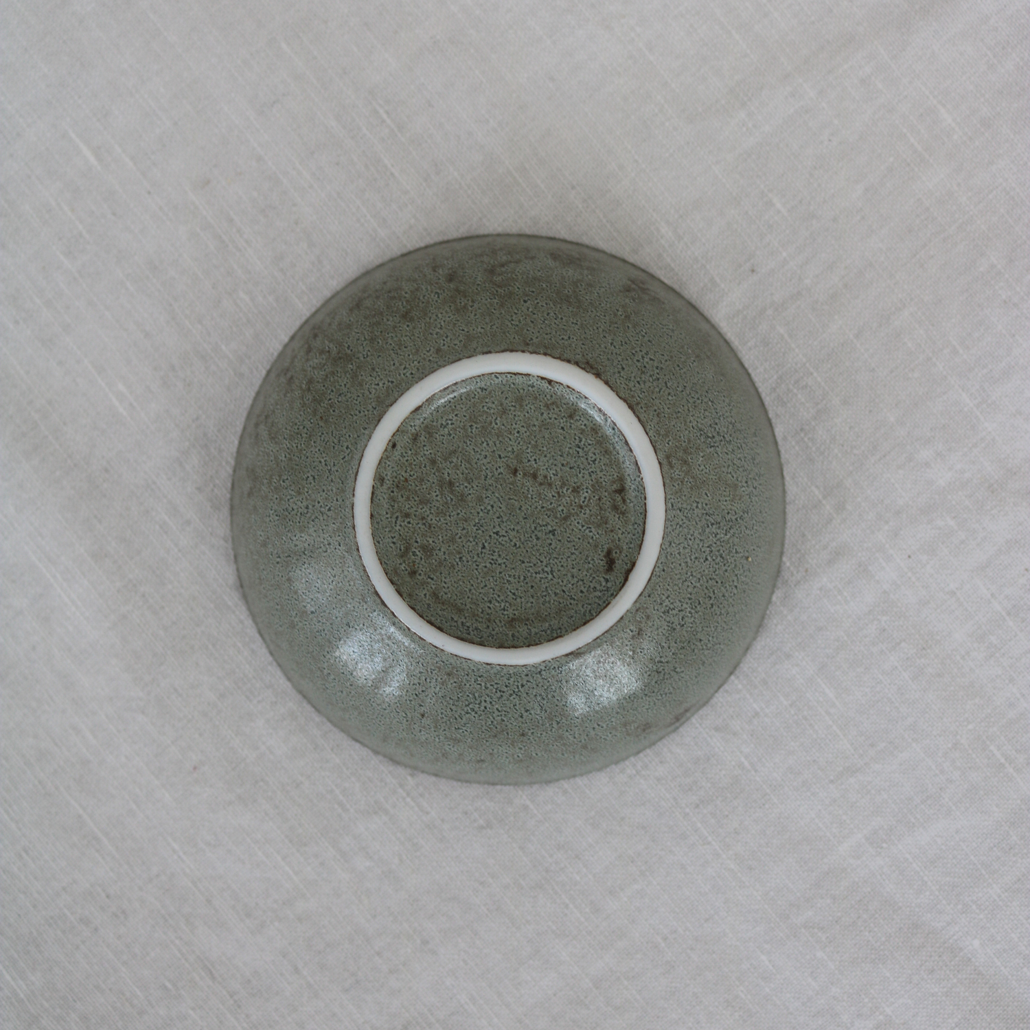 前菜用の小鉢、おつまみを盛るのにちょうど良い、ニュアンスカラーのミニボウルです。 グリーン系のグレイッシュな独特の色味は。よく見ると緑ががったグレー、青みがかったグレー、サビ色、色々な色の集まりでできています。